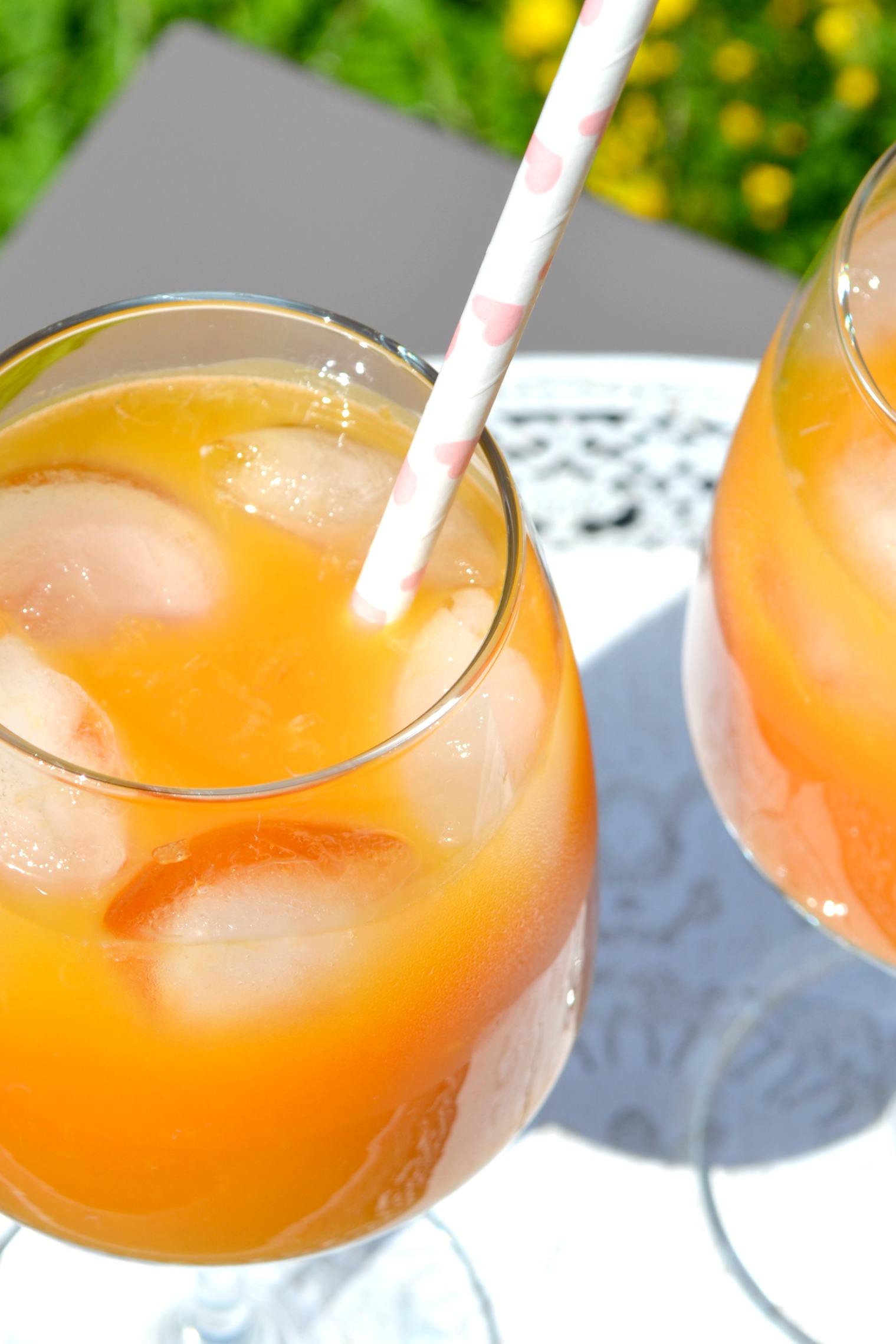 Mischt die Säfte im Verhältnis 1:1 und gebt dann jeweils noch so etwa einen Esslöffel des Sirups hinzu. Mit einer Handvoll Eiswürfel bestücken und voila habt ihr eine grandiose Kombination zum Frühstück, zum Grillen oder einfach zur Erfrischung.