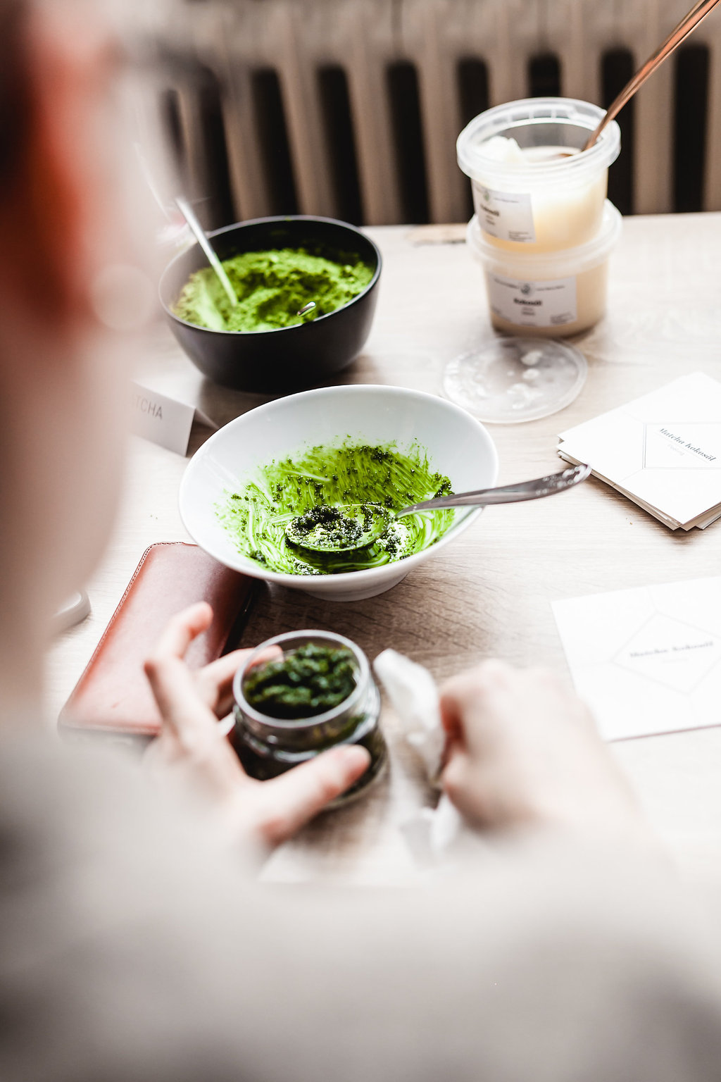 Im nächsten Part ging es für uns an die Beauty-Bar, an der wir mit Matcha unsere eigene Badebombe, ein Körperpeeling und einen Lipbalm erstellen konnten und das Schönste – alles aus natürlichen und in fast jedem Haushalt vollständig vorhandenen Zutaten.