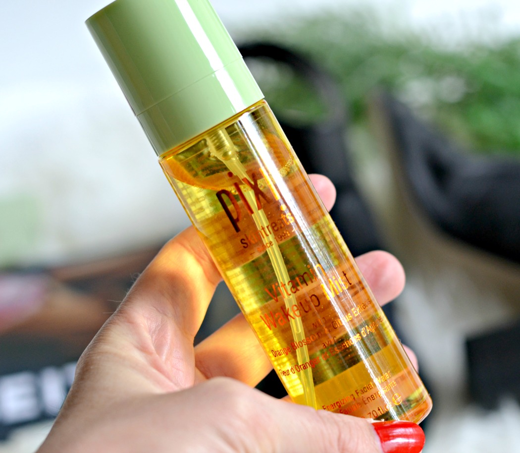 Ebenfalls ein guter Helfer, um diesem fiesen Schein auf dem Gesicht entgegenzuwirken, ist der Primer von Catrice* Prime and Fine. Mit diesem schafft ihr eine tolle Grundlage für euer Make-Up und das ganz ohne Öle. Ein Primer mit dem ich bisher fast am besten zurecht kam, eben weil er nicht so scheinend ist und schon vor dem Puder eine schöne matte Grundlage bietet. Das letzte Produkt für’s Gesicht ist der Vitamin WakeUp Mist von Pixi*. Er erfüllt einige Zwecke und lässt sich sowohl morgens als auch abends gut anwenden. Wenn ihr ihn morgens nach der Reinigung und vor der Pflege aufsprüht, wird die Haut wunderbar mit Feuchtigkeit versorgt. Abends nach dem Abschminken bildet er einen angenehmen Schutzfilm. Ich verwende ihn vor allem morgens sehr gerne, da sein angenehmer Duft meine müden Lebensgeister weckt. Raus aus der Dusche und dann auf das Gesicht und das Dekolette aufsprühen – herrlich! Erfrischt und weckt einen dann vollends. Aber auch, wenn ihr unterwegs seid, könnt ihr hier und da mal einen ordentlichen Sprüher über euch rieseln lassen!