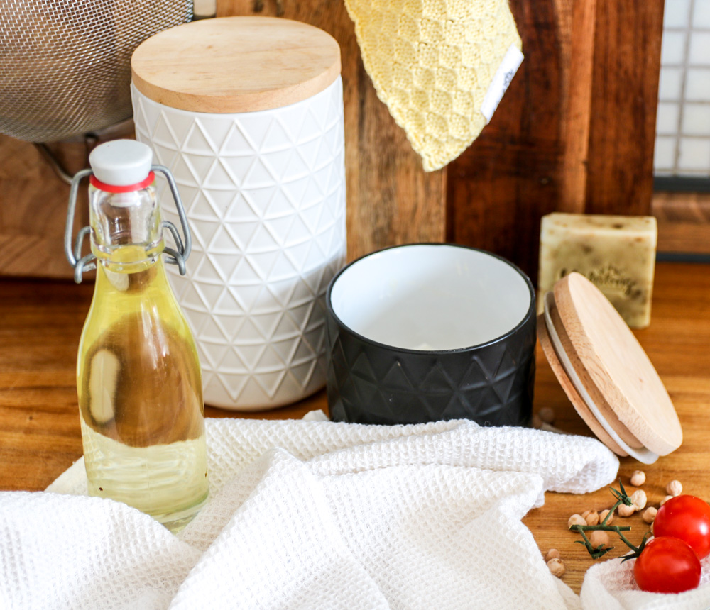 Auch Plastikdosen und ähnliches haben weitestgehend schon jetzt keinen Platz mehr bei uns daheim und die wenigen, die wir noch besitzen, werden nun regelmäßig ersetzt bzw. durch Glasdosen und Steingutbüchsen ausgetauscht. Das Praktische an den Glasdosen ist, dass man diese auch direkt in den Ofen stellen kann, wenn man eben etwas vorbereitet hat oder das Essen vom Vortag dort lagerte, um es am nächsten Tag wieder aufzuwärmen. Vorkochen geht ebenfalls so grandios, da man sie gut einfrieren kann und keine Sorge wegen Verfärbungen des Plastik und ähnlichem haben muss. Für trockene Zutaten nehme ich unheimlich gerne schöne Steingutbehälter. Zucker, Mehl, Salz und Co. finden dort einen schicken und dichten Platz, um jederzeit auch auf den Tisch gestellt zu werden oder eben in meiner Nähe beim Kochen zu sein. Dummerweise kaufe ich die Grundzutaten noch viel zu häufig im gewöhnlichen Supermarkt,was bedeutet, dass ich ja dennoch teilweise die Plastikverpackung mitnehme bzw. eben auch Geld dafür bezahle. Wir haben in Krefeld seit gut einem Jahr einen Unverpacktladen und ich will mich endlich nötigen, dort zumindest gewisse Grundnahrungsmittel, wie eben Nudeln, Mehl und dergleichen zu besorgen. Ich hoffe, ich kann mir selbst mal in den Pobbes treten und auf meine eigenen Ratschläge hören. We will see.