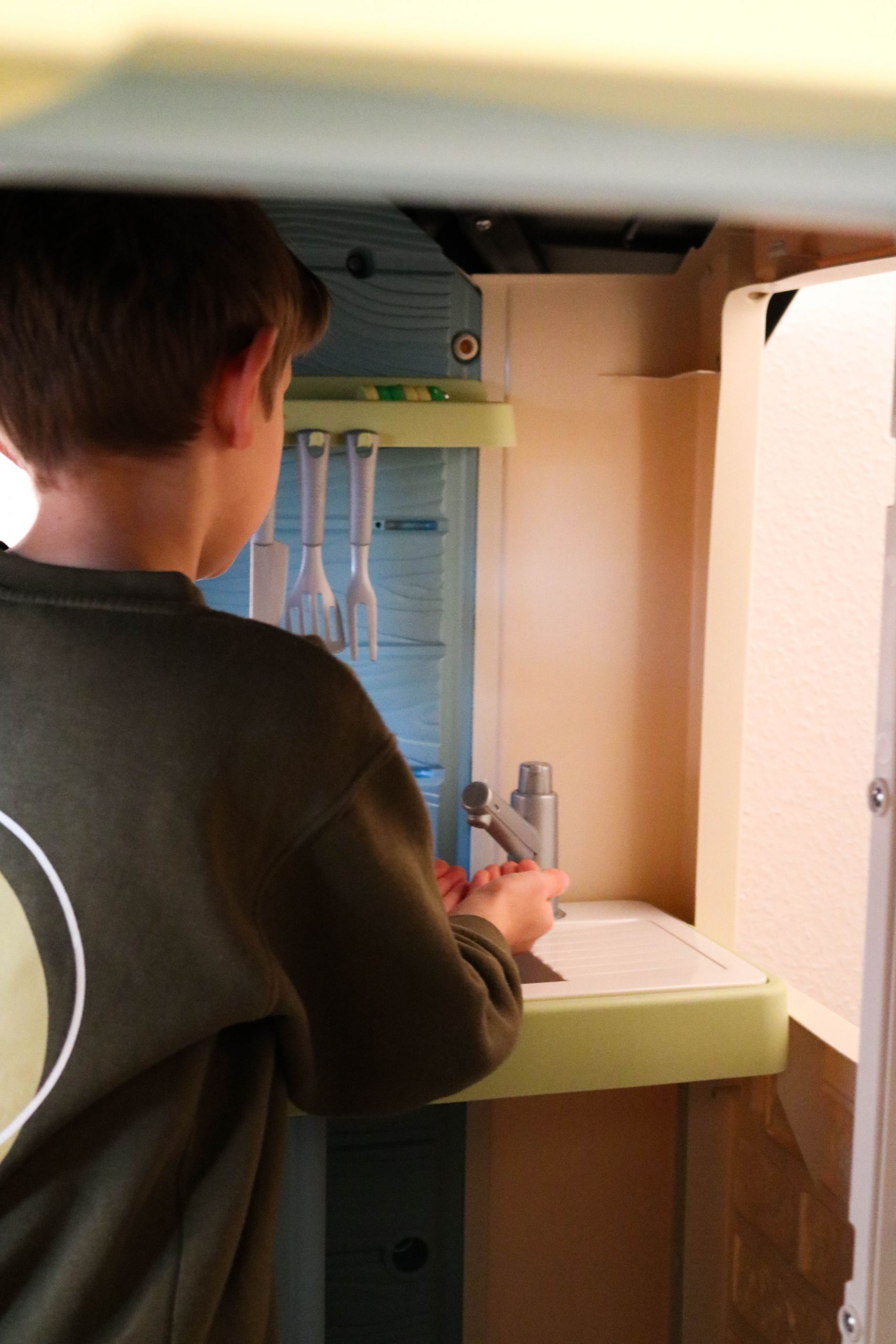 Die Miniküche ist komplett ausgestattet, mit Herd, Spüle und Ablageflächen. Aber was unsere Jungs am meisten lieben, sind die kleinen Extras: