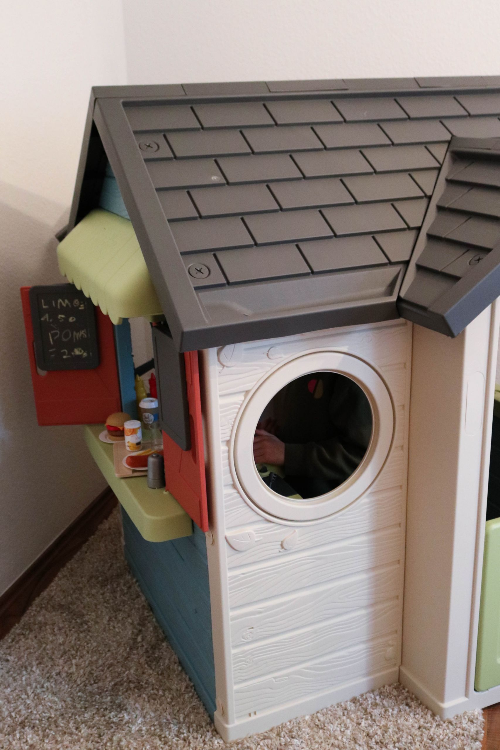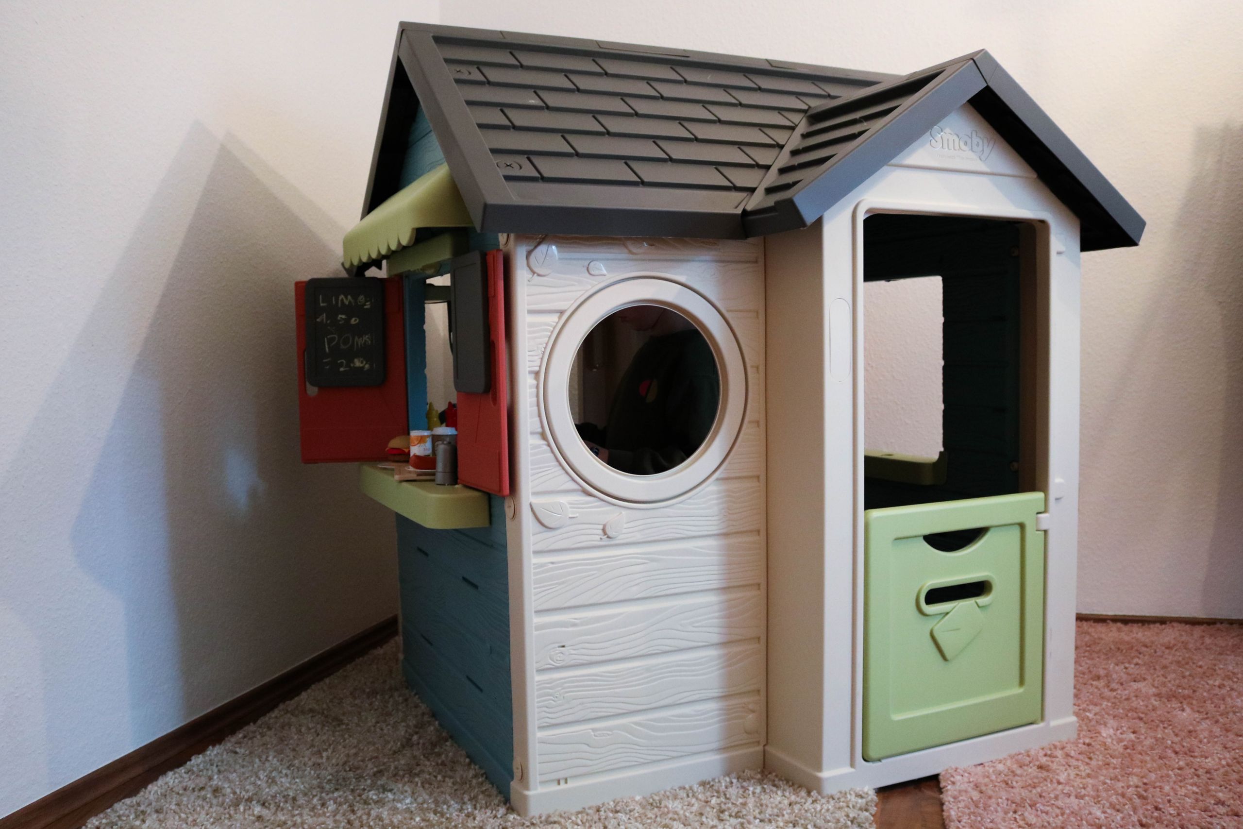 Und jetzt, Jahre später, steht so ein Häuschen mitten im Zimmer meiner Jungs: das Smoby Chef Haus.